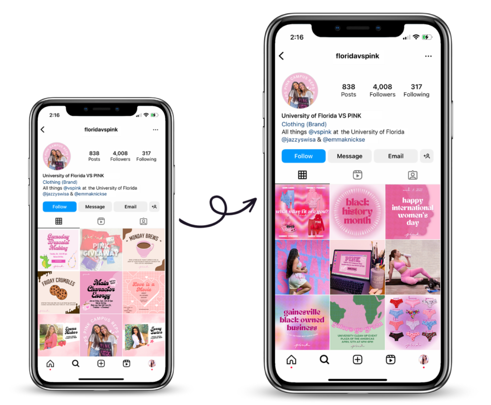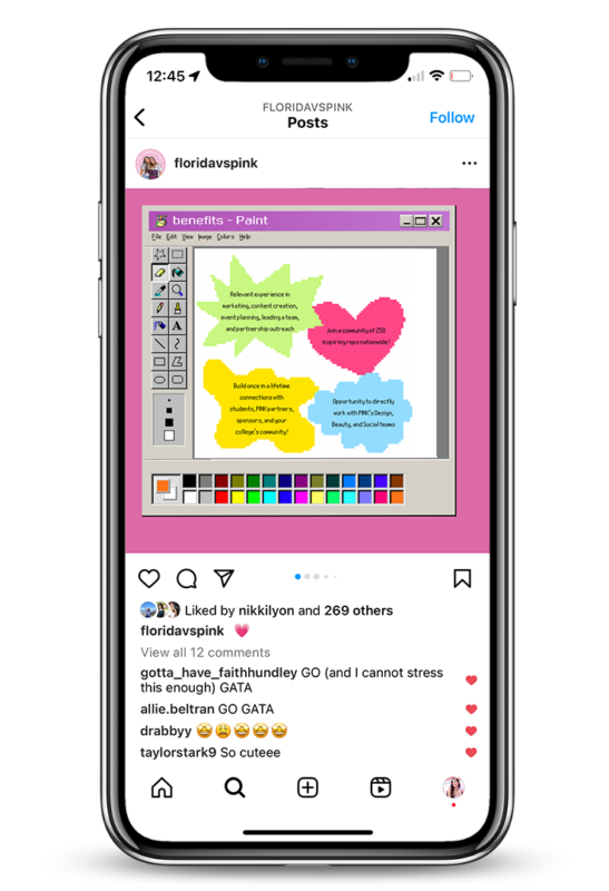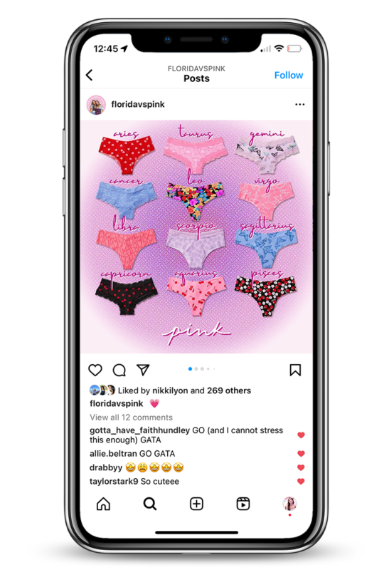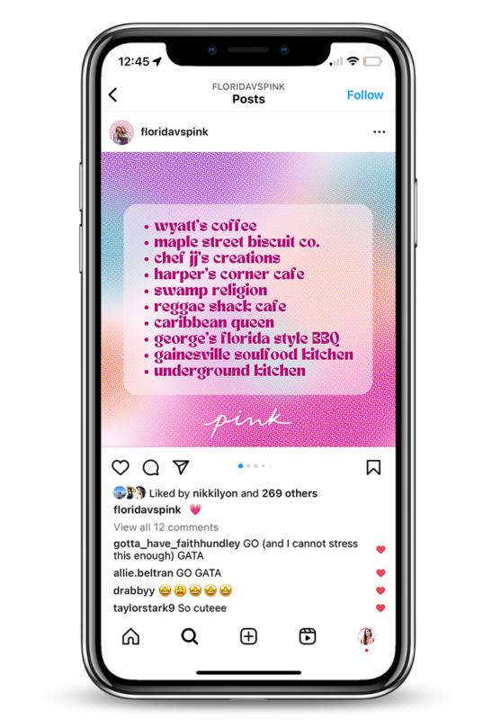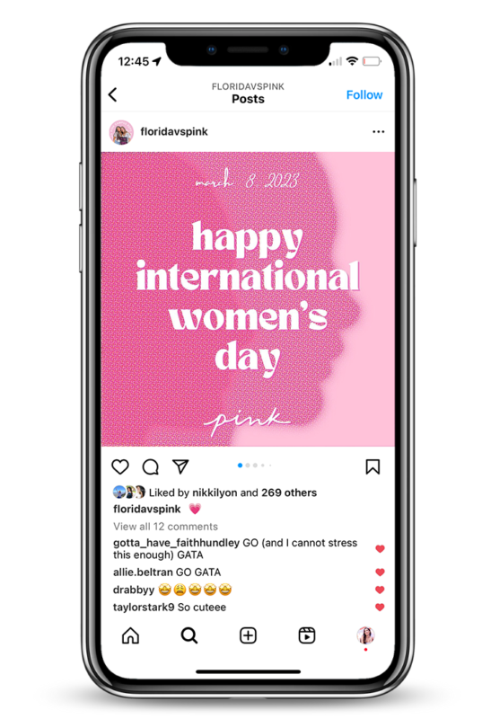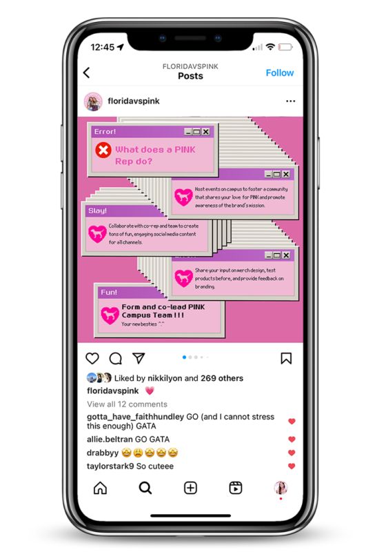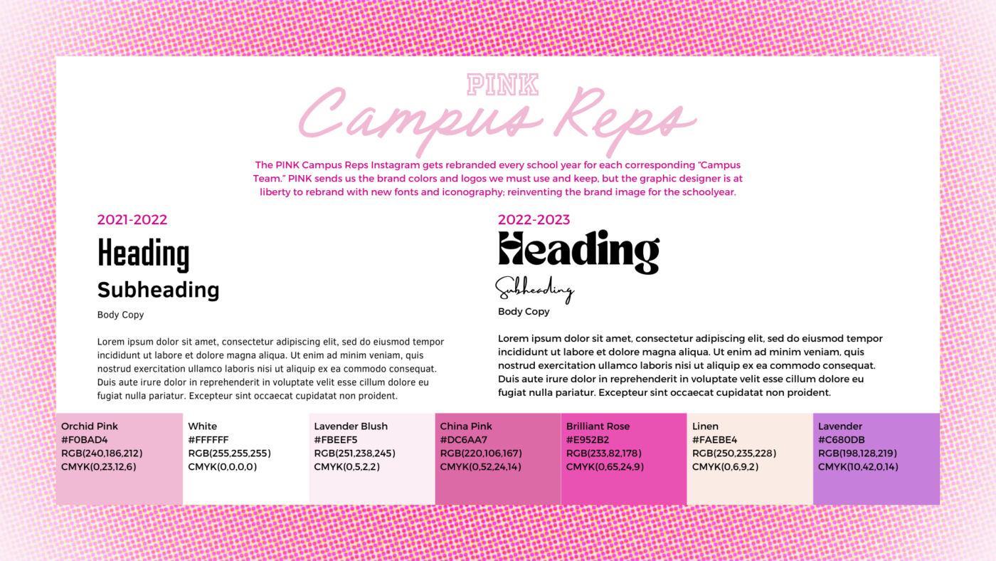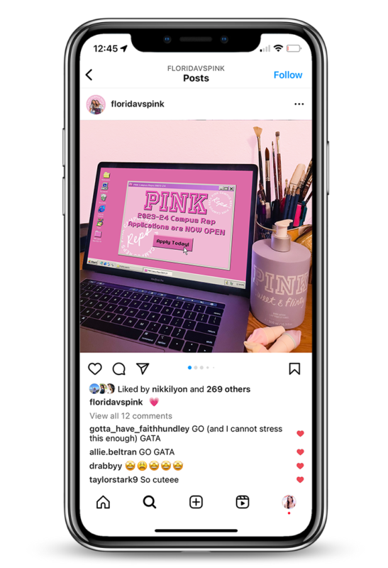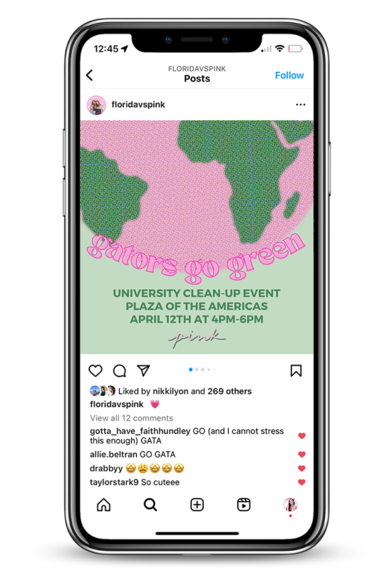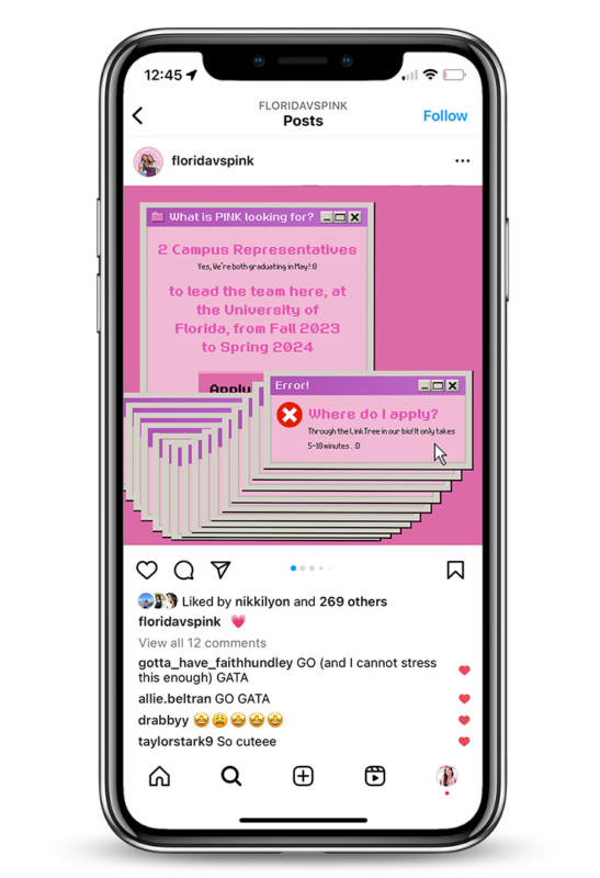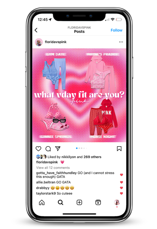 My last year at UF, I’ve had the pleasure to be chosen as a member of the University of Florida’s Victoria Secret PINK Campus Team. On the PINK Campus Team, my position as the Graphic Designer had me working alongside the PINK Campus Representatives creating graphics, conceptualizing and editing photoshoots, and rebranding the team’s social media for the 2022-2023 school year.